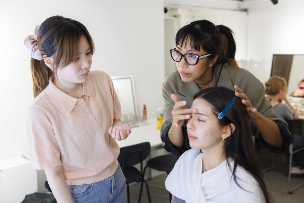 1モデルに各2名の学生がメイクとヘアを担当してもらいます。