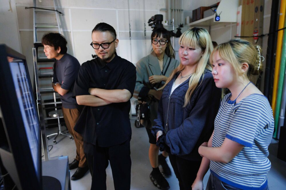 自分の目で見るのと、撮影された画像で見るのではまた違い、変わるカメラアングルにも合うように手直しで微調整を行い、学生たちも撮影に協力しながら納得のいく仕上がりに近づけていきます。